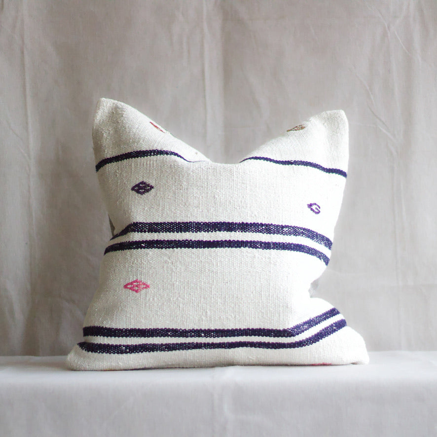Turkish Kilim Rug Pillow - Lg. Square White