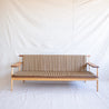 MCM Wooden Sofa w/ Tan Leather Cushion